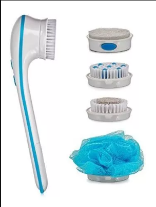 pilas no incluidas incluye cinco accesorios: microderm, masaje, cepillo, piedra pómez y cabeza limpiadora - requiere 3 pilas aa el mango largo facilita el acceso a la espalda y la parte inferior de las piernas; presentada con un botón hi / low para ajustes de velocidad rellenos con jabón: funciona con tu jabón favorito o gel de baño para la limpieza diaria. ayuda a promover una piel más saludable, más joven y alivia instantáneamente los músculos doloridos.